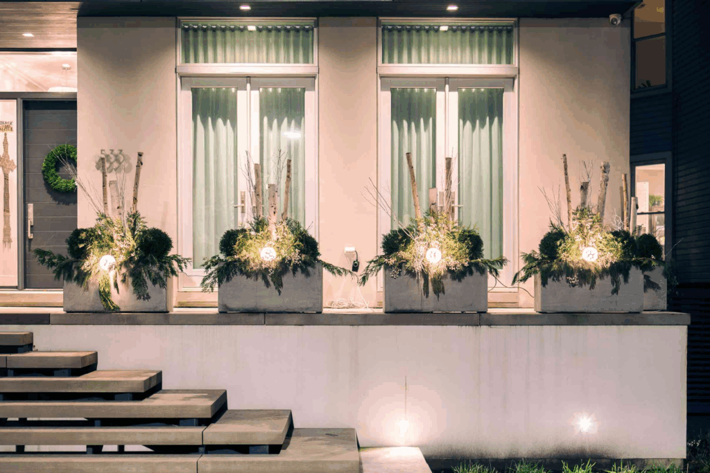 Keep it elegant by avoiding inflatables or loud themed décor that distract from your home’s architecture.